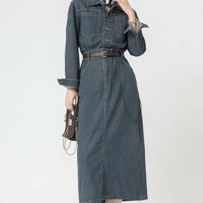 ベルトデザインが特徴的なデニムワンピース。